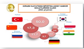 2022- yilning yanvar oyida viloyatning import hajmi 21,3 mln AQSh dollarini tashkil etgan.