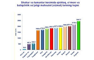 Dastlabki ma’lumotlarga ko‘ra, 2021– yilning yanvar– dekabr oylarida shahar va tumanlar kesimida qishloq, o‘rmon va baliqchilik xo‘jaligi mahsulot (xizmat) lari ishlab chiqarish hajmi bo‘yicha yetakchilik qilgan hududlar: