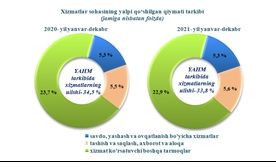 2021- yil yanvar-dekabr oylarida yalpi hududiy mahsulot hajmida umumiy xizmatlar sohasining ulushi 33,8 foiz (2020- yil yanvar-dekabr oylarida 34,5 foiz) ni tashkil qildi.
