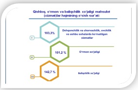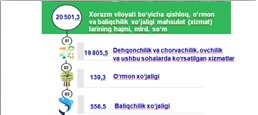 Dastlabki ma’lumotlari bo‘yicha, 2021 – yilning yanvar– dekabr oylarida viloyatda ishlab chiqarilgan qishloq, o‘rmon va baliqchilik xo‘jaligi mahsulot (xizmat) larining umumiy hajmi 20 501,3 mlrd. so‘mni tashkil qilgan.