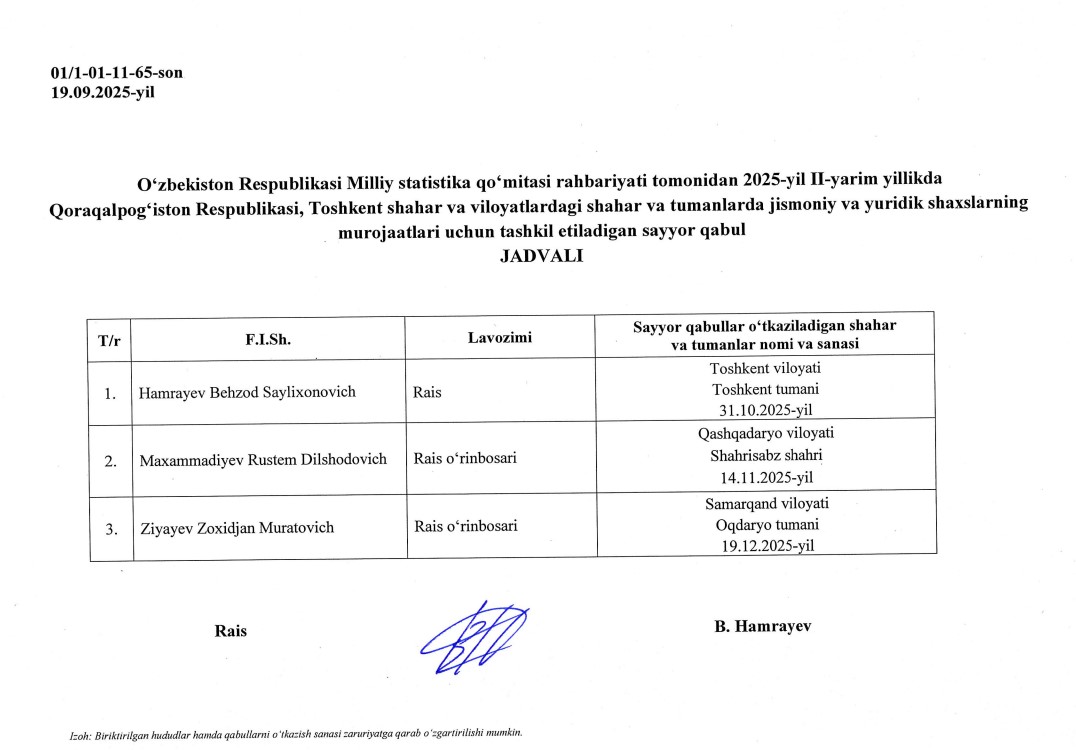 Qabul qilish jadvali