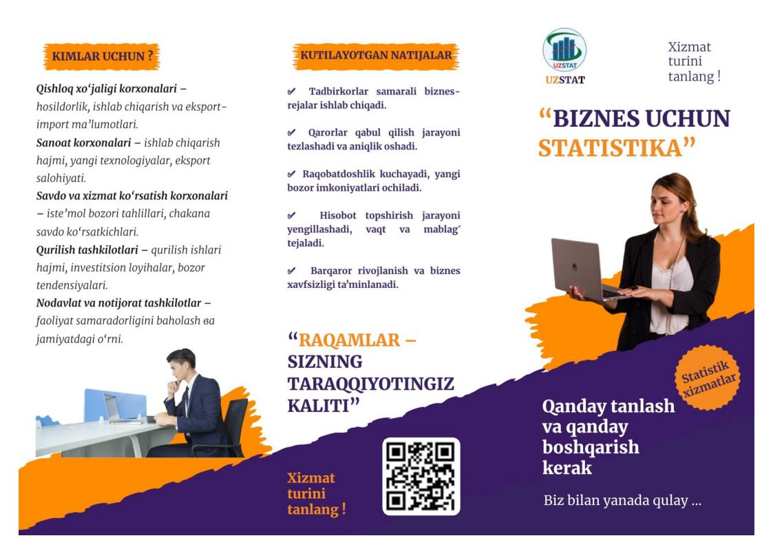 O‘zbekiston Respublikasi Prezidentining 2025-yil 24-fevraldagi "O‘zbekiston Respublikasi Milliy statistika qo‘mitasi faoliyatini tashkil etish chora-tadbirlari to‘g‘risida" PQ-75-son qaroriga muvofiq statistika tizimidagi tashkilotlarda "Biznes uchun statistika" konsalting xizmati joriy etildi.