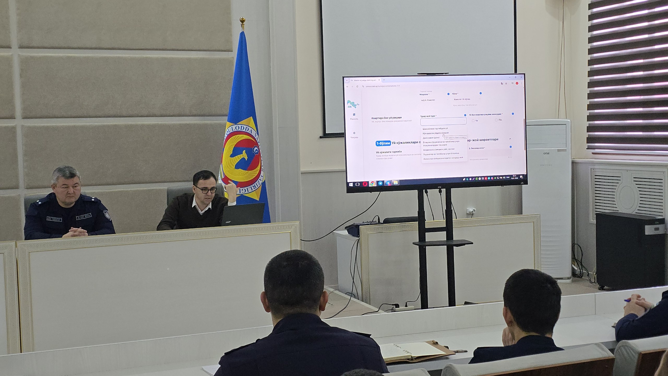 Viloyat Favqulotda vaziyatlar boshqarmasining harbiy xizmatchilari ishtirokida joriy yilning 16- yanvar kuni seminar bo‘lib o‘tdi. Unda viloyat statistika boshqarmasi bo‘lim boshlig‘i Sh.Davletov ishtirok etdi. Boshqarma xodimlariga onlayn ro‘yxatdan o‘tish bo‘yicha videoqo‘llanma namoyish etilib, jarayonda yuzaga kelishi mumkin bo‘lgan savollarga keng tarzda tushuntirishlar berildi.